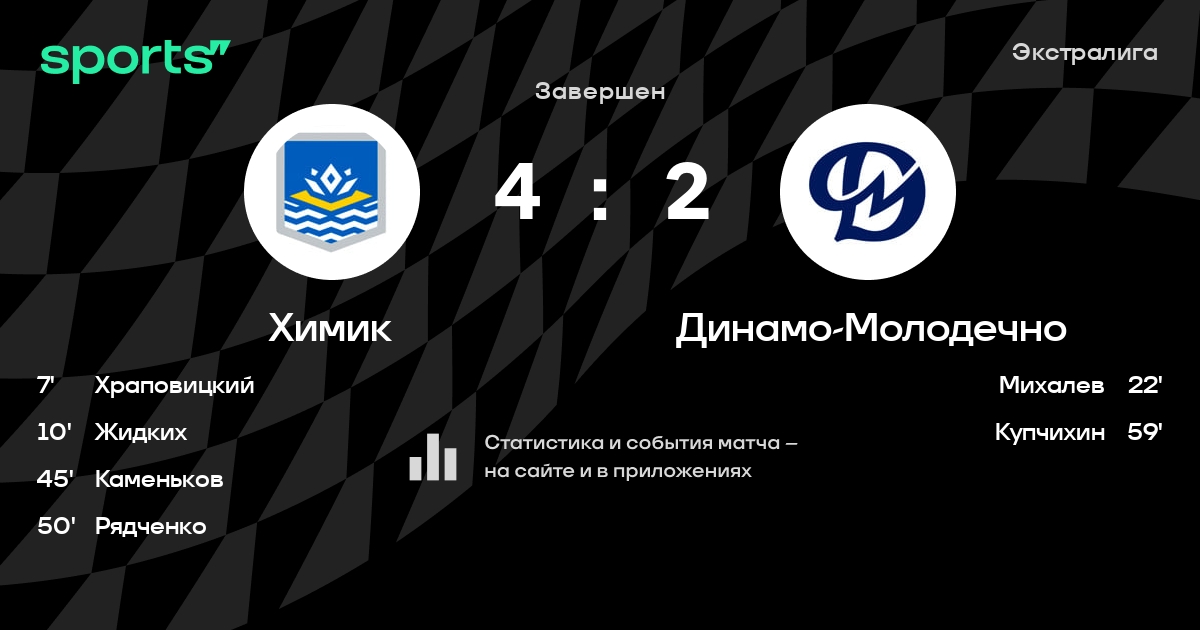 В прошедшем матче в рамках турнира Экстралига состоялась встреча команд Химик - Динамо-Молодечно в городе Новополоцк (Беларусь) на стадионе Дворец культуры и спорта (вместимость - 1200)