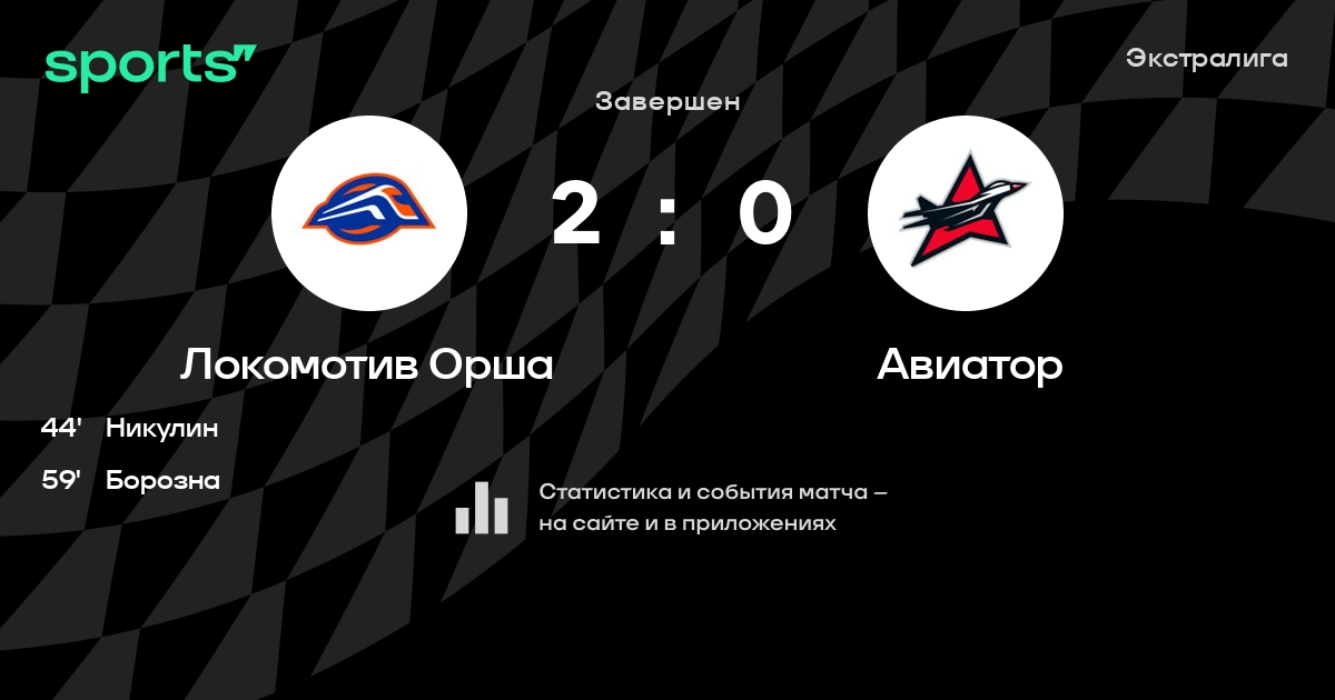 В прошедшем матче в рамках турнира Экстралига состоялась встреча команд Локомотив Орша - Авиатор в городе Орша (Беларусь) на стадионе Ледовая арена Орша (вместимость - 3500)