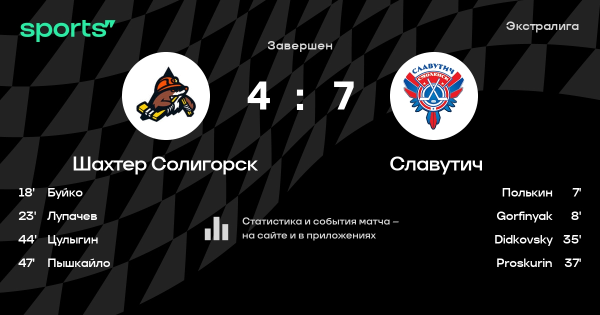 В прошедшем матче в рамках турнира Экстралига состоялась встреча команд Шахтер Солигорск - Славутич в городе Солигорск (Беларусь) на стадионе Ледовый дворец спорта Солигорск (вместимость - 1800)