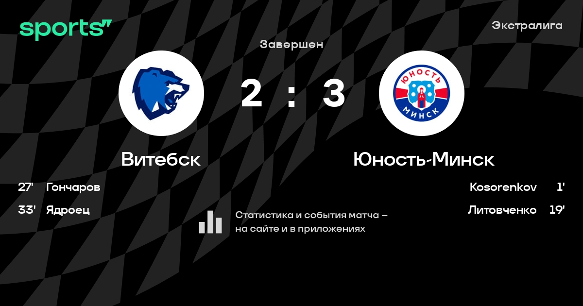 В прошедшем матче в рамках турнира Экстралига состоялась встреча команд Витебск - Юность-Минск в городе Витебск (Беларусь) на стадионе Витебский дворец спорта (вместимость - 2000)