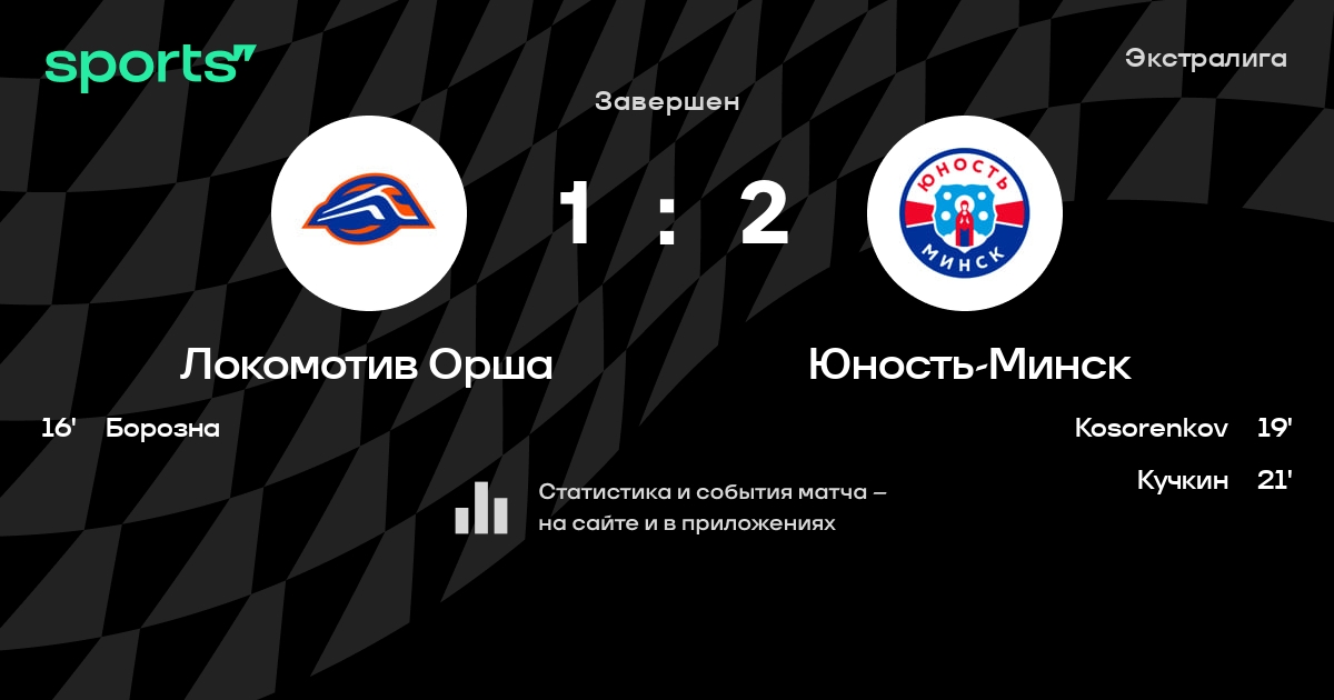 В прошедшем матче в рамках турнира Экстралига состоялась встреча команд Локомотив Орша - Юность-Минск в городе Орша (Беларусь) на стадионе Ледовая арена Орша (вместимость - 3500)