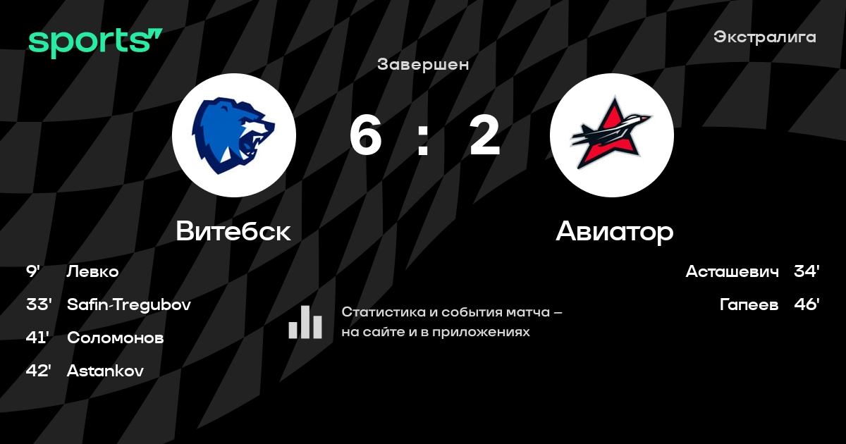 В прошедшем матче в рамках турнира Экстралига состоялась встреча команд Витебск - Авиатор в городе Витебск (Беларусь) на стадионе Витебский дворец спорта (вместимость - 2000)