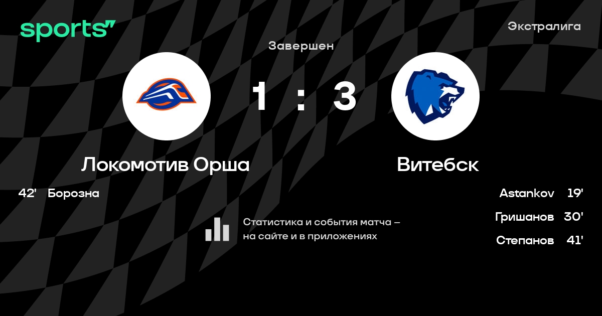 В прошедшем матче в рамках турнира Экстралига состоялась встреча команд Локомотив Орша - Витебск в городе Орша (Беларусь) на стадионе Ледовая арена Орша (вместимость - 3500)