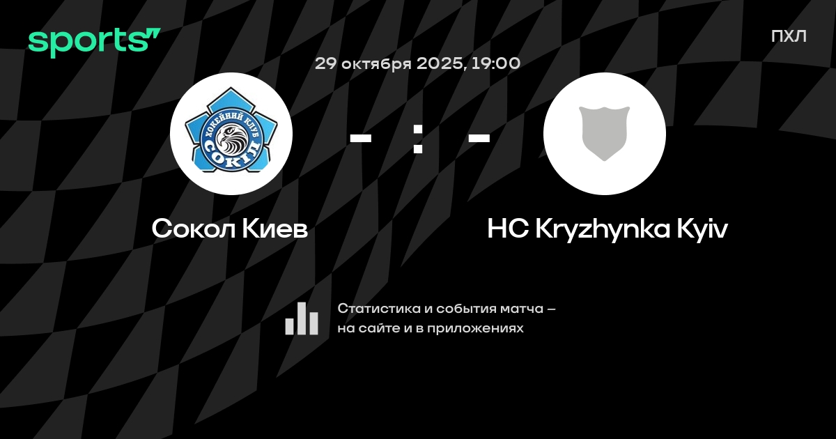 В предстоящем матче в рамках турнира ПХЛ пройдет встреча команд Сокол Киев - HC Kryzhynka Kyiv в городе на стадионе ATEK, Sport Complex.