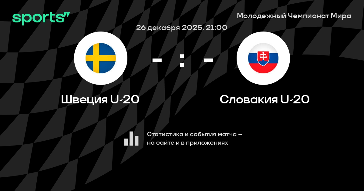 В предстоящем матче в рамках турнира Молодежный Чемпионат Мира Групповая стадия пройдет встреча команд Швеция U-20 - Словакия U-20 .