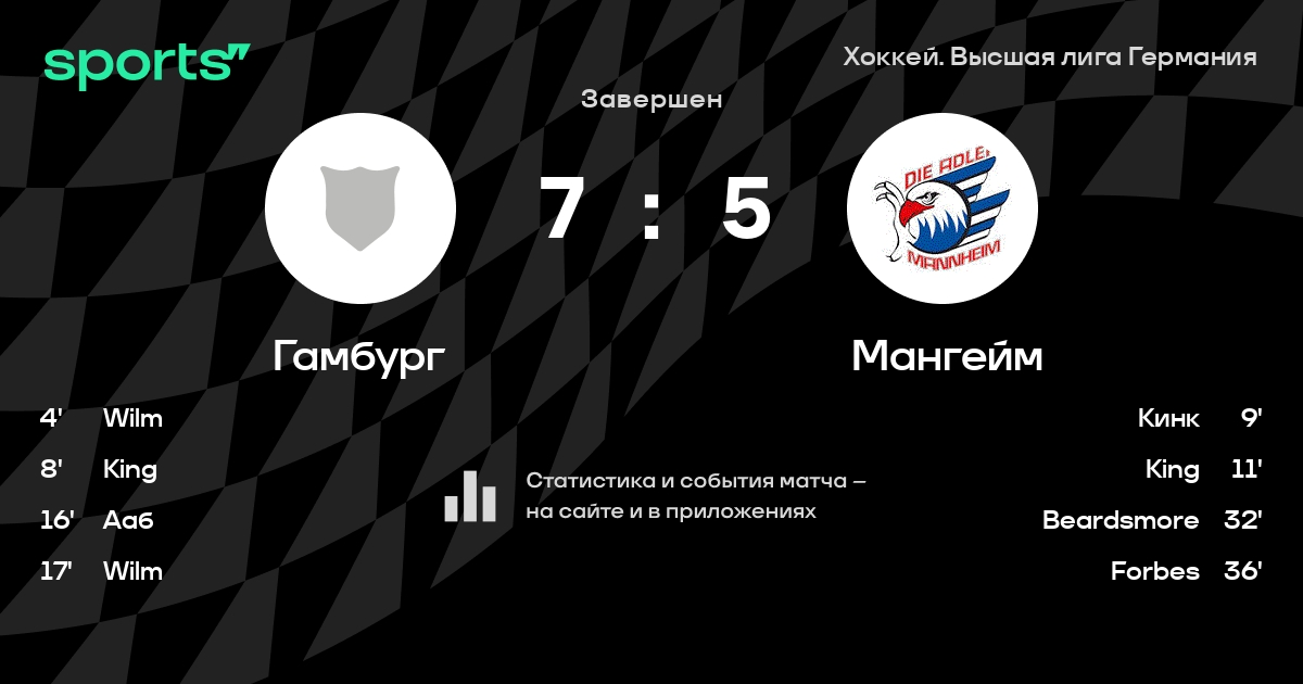 В прошедшем матче в рамках турнира Хоккей. Высшая лига Германия состоялась встреча команд Гамбург - Мангейм со счетом 7 : 5.