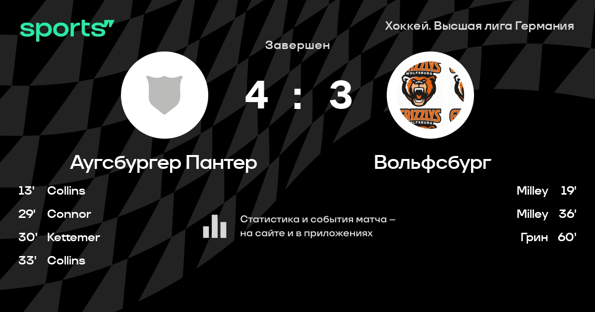 В прошедшем матче в рамках турнира Хоккей. Высшая лига Германия состоялась встреча команд Аугсбургер Пантер - Вольфсбург со счетом 4 : 3.
