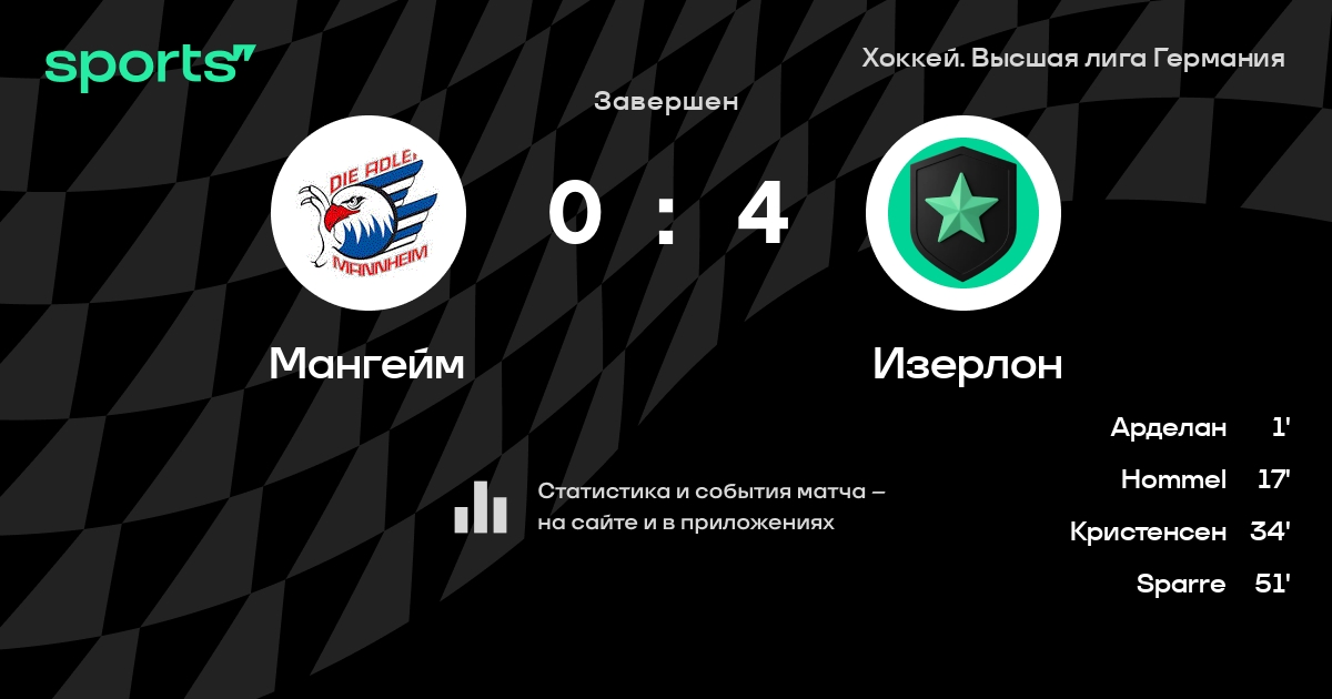 В прошедшем матче в рамках турнира Хоккей. Высшая лига Германия состоялась встреча команд Мангейм - Изерлон со счетом 0 : 4.