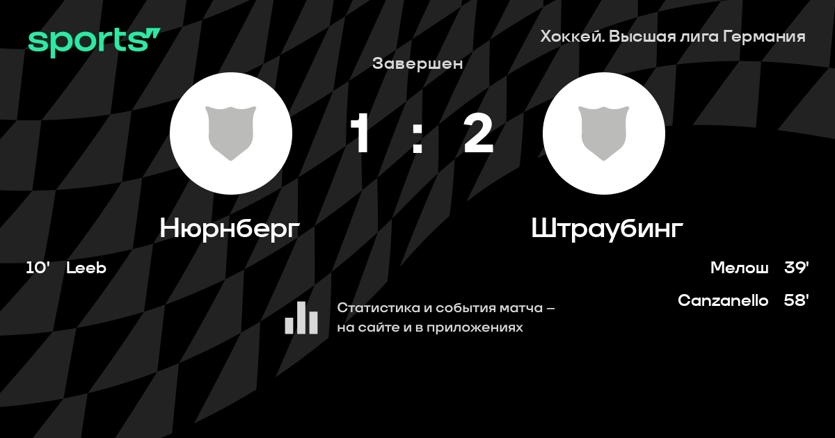 В прошедшем матче в рамках турнира Хоккей. Высшая лига Германия состоялась встреча команд Нюрнберг - Штраубинг со счетом 1 : 2.