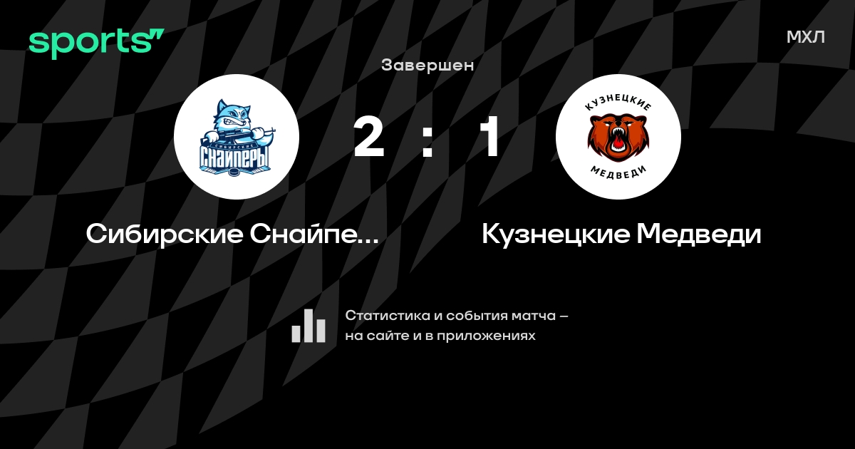 В прошедшем матче в рамках турнира МХЛ состоялась встреча команд Сибирские Снайперы - Кузнецкие Медведи со счетом 2 : 1.