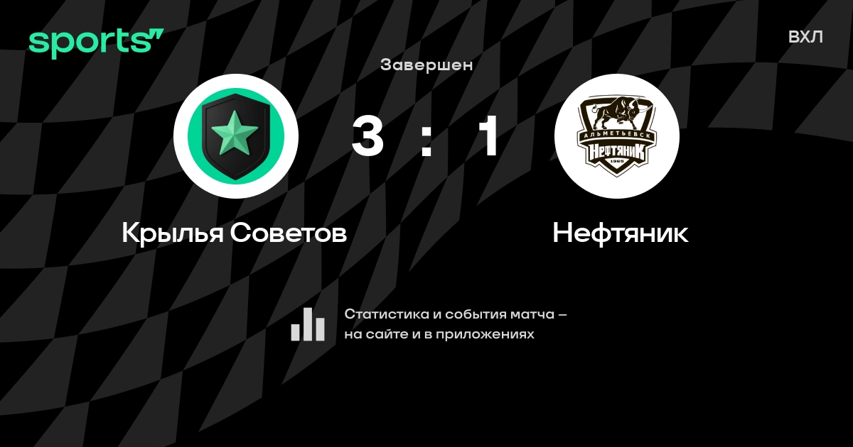 В прошедшем матче в рамках турнира ВХЛ состоялась встреча команд Крылья Советов - Нефтяник со счетом 3 : 1.