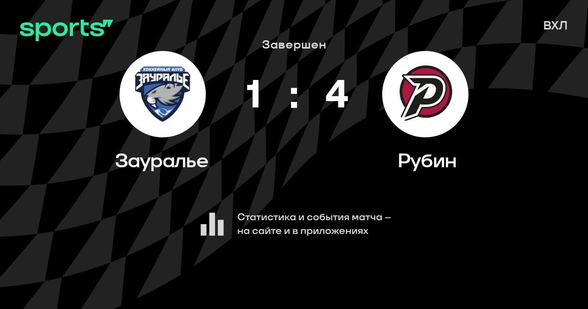 В прошедшем матче в рамках турнира ВХЛ состоялась встреча команд Зауралье - Рубин со счетом 1 : 4.