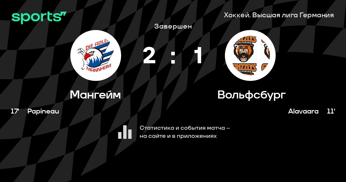 В прошедшем матче в рамках турнира Хоккей. Высшая лига Германия состоялась встреча команд Мангейм - Вольфсбург со счетом 2 : 1.