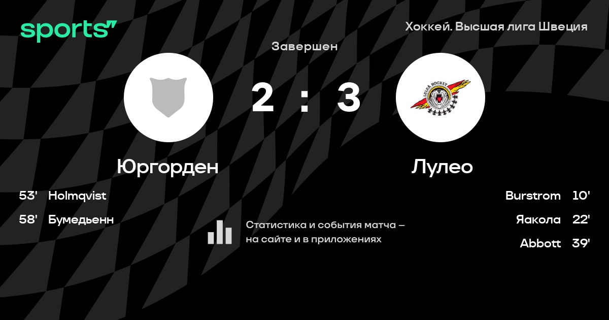В прошедшем матче в рамках турнира Хоккей. Высшая лига Швеция состоялась встреча команд Юргорден - Лулео со счетом 2 : 3.