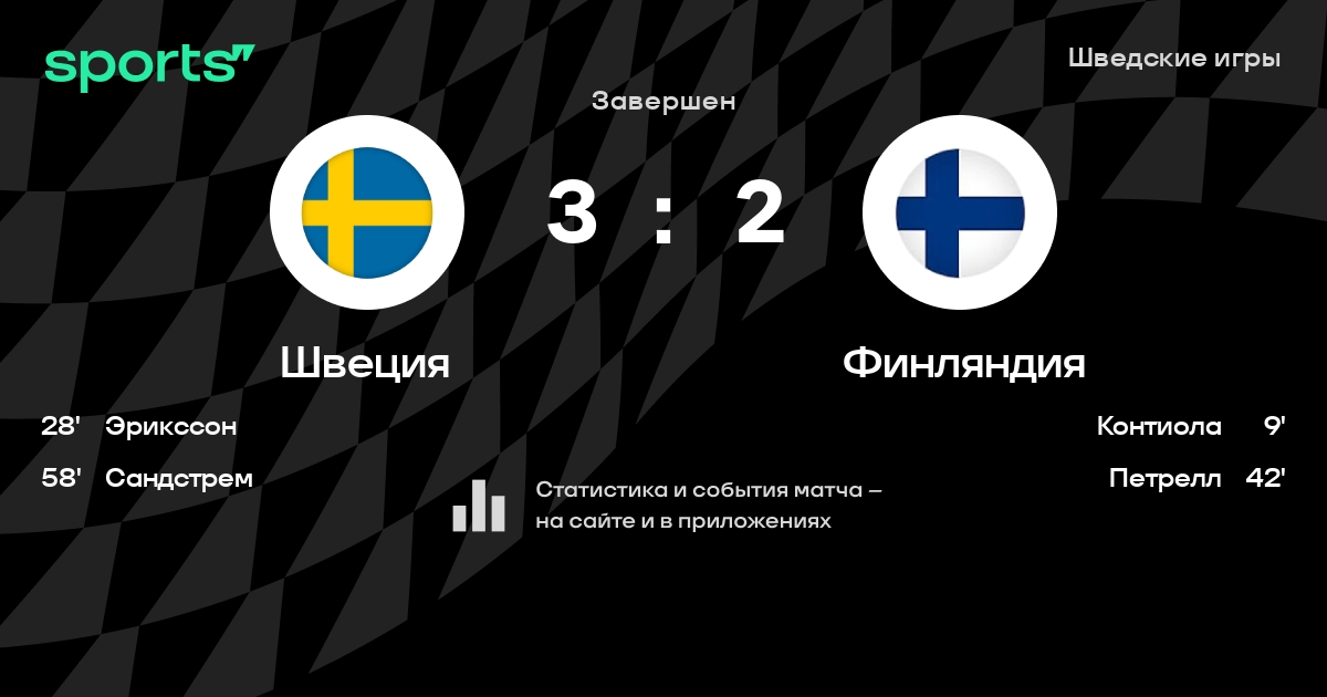 В прошедшем матче в рамках турнира Шведские игры состоялась встреча команд Швеция - Финляндия со счетом 3 : 2.