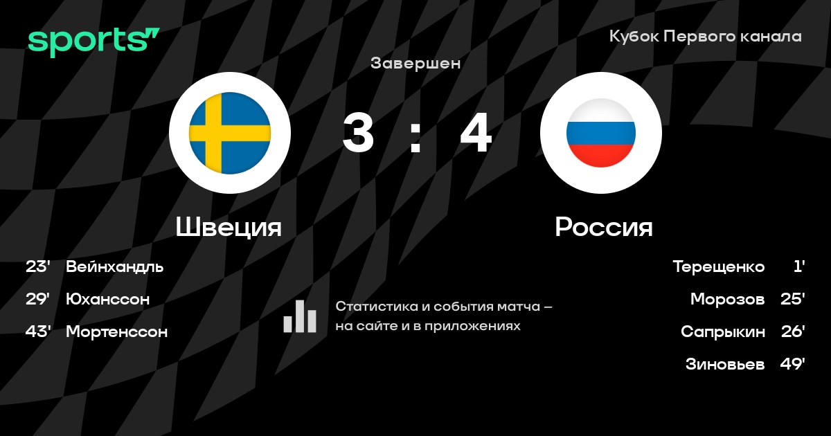 Sports.ru предлагает Вашему вниманию прямую текстовую трансляцию матча Кубка Первого канала Швеция - Россия.