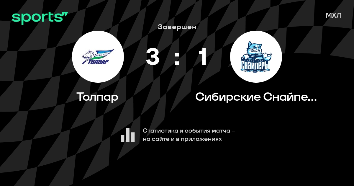 В прошедшем матче в рамках турнира МХЛ состоялась встреча команд Толпар - Сибирские Снайперы со счетом 3 : 1.