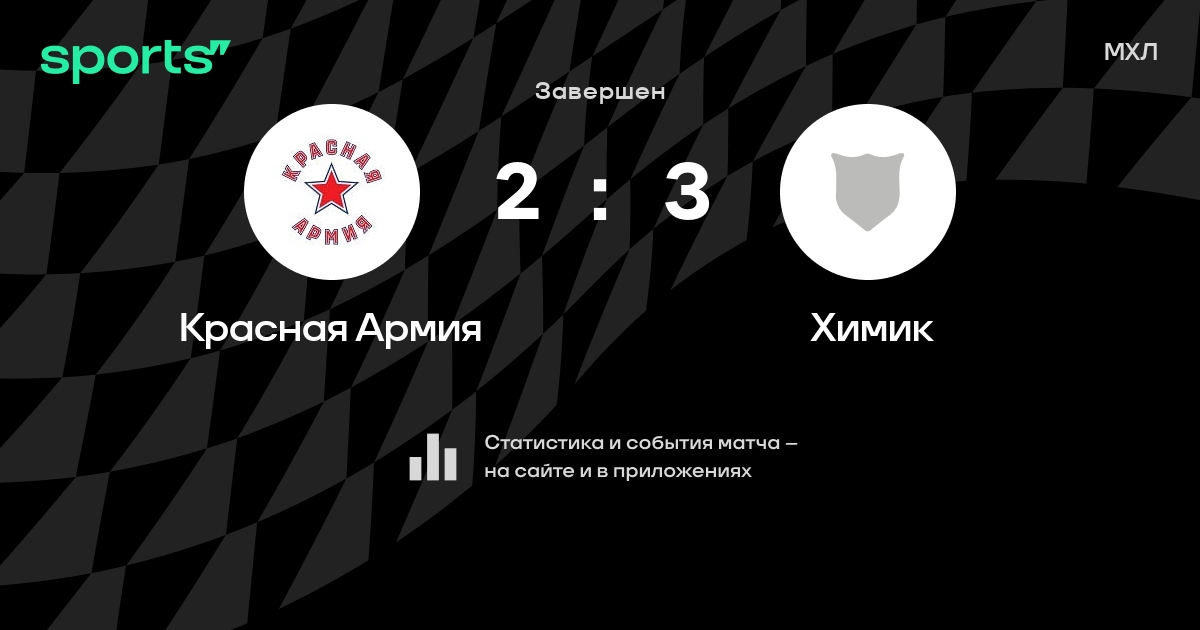 В прошедшем матче в рамках турнира МХЛ состоялась встреча команд Красная Армия - Химик со счетом 2 : 3.