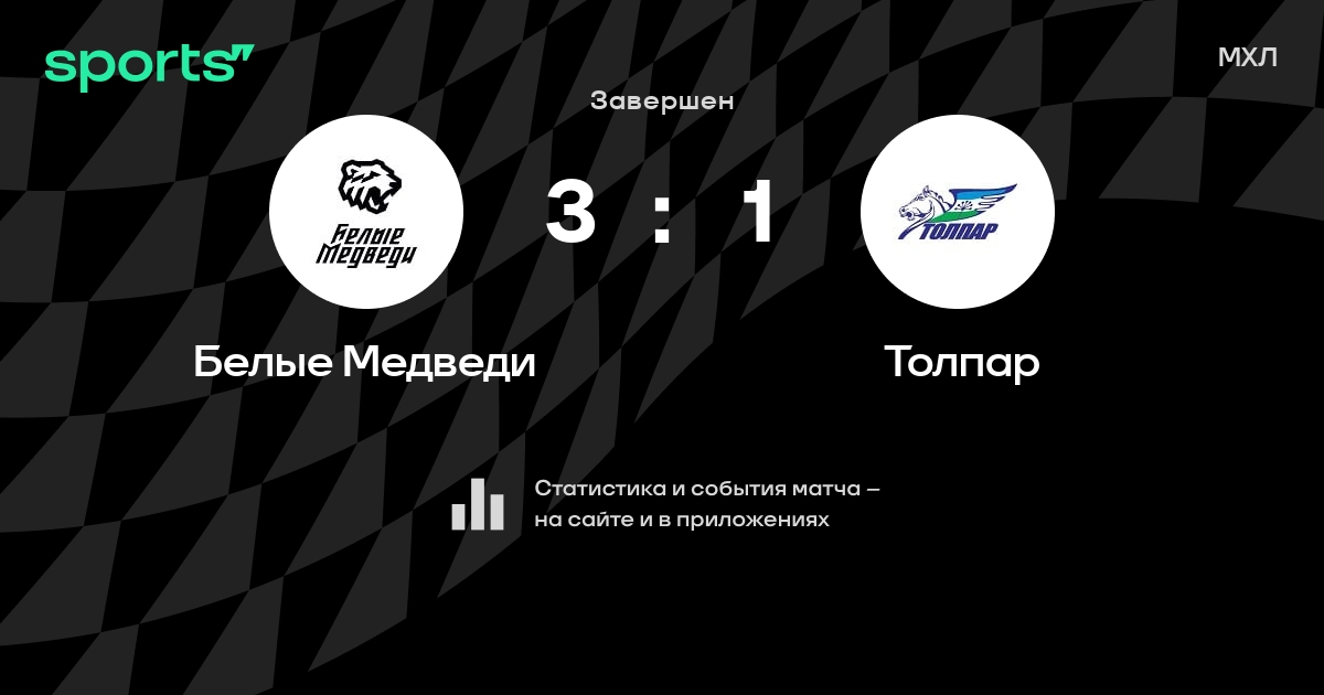 В прошедшем матче в рамках турнира МХЛ состоялась встреча команд Белые Медведи - Толпар со счетом 3 : 1.