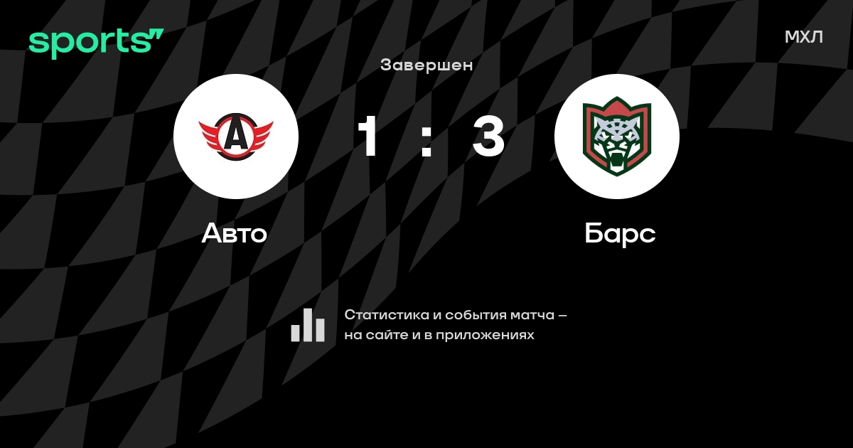 В прошедшем матче в рамках турнира МХЛ состоялась встреча команд Авто - Барс со счетом 1 : 3.