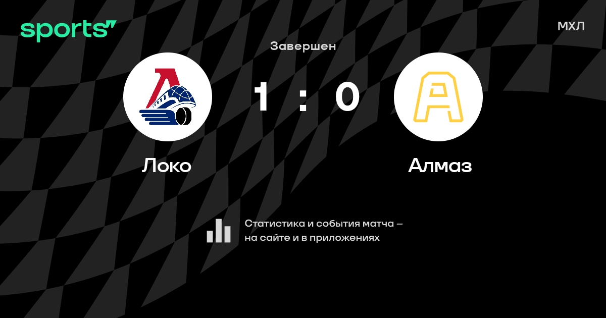 В прошедшем матче в рамках турнира МХЛ состоялась встреча команд Локо - Алмаз со счетом 1 : 0.