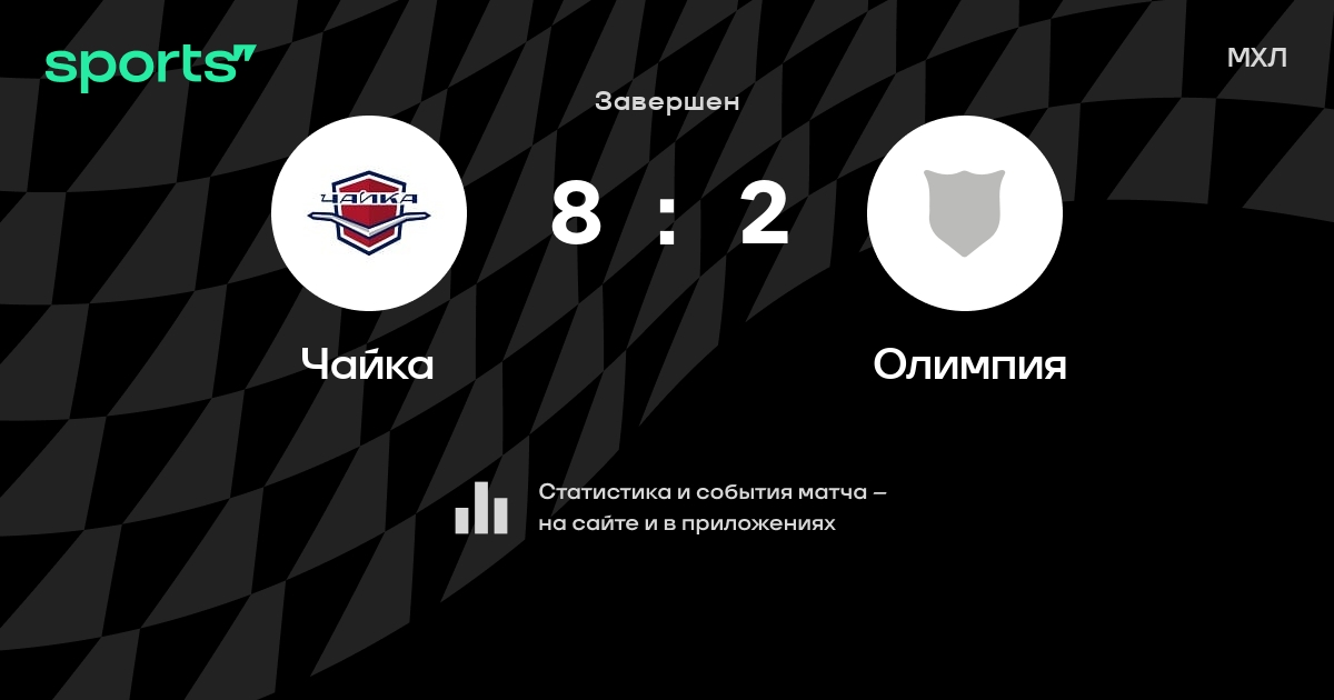 В прошедшем матче в рамках турнира МХЛ состоялась встреча команд Чайка - Олимпия со счетом 8 : 2.