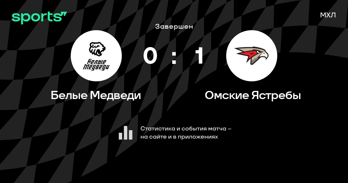 В прошедшем матче в рамках турнира МХЛ состоялась встреча команд Белые Медведи - Омские Ястребы со счетом 0 : 1.