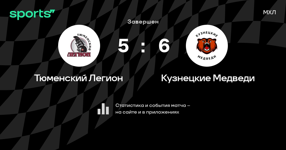 В прошедшем матче в рамках турнира МХЛ состоялась встреча команд Тюменский Легион - Кузнецкие Медведи со счетом 5 : 6.