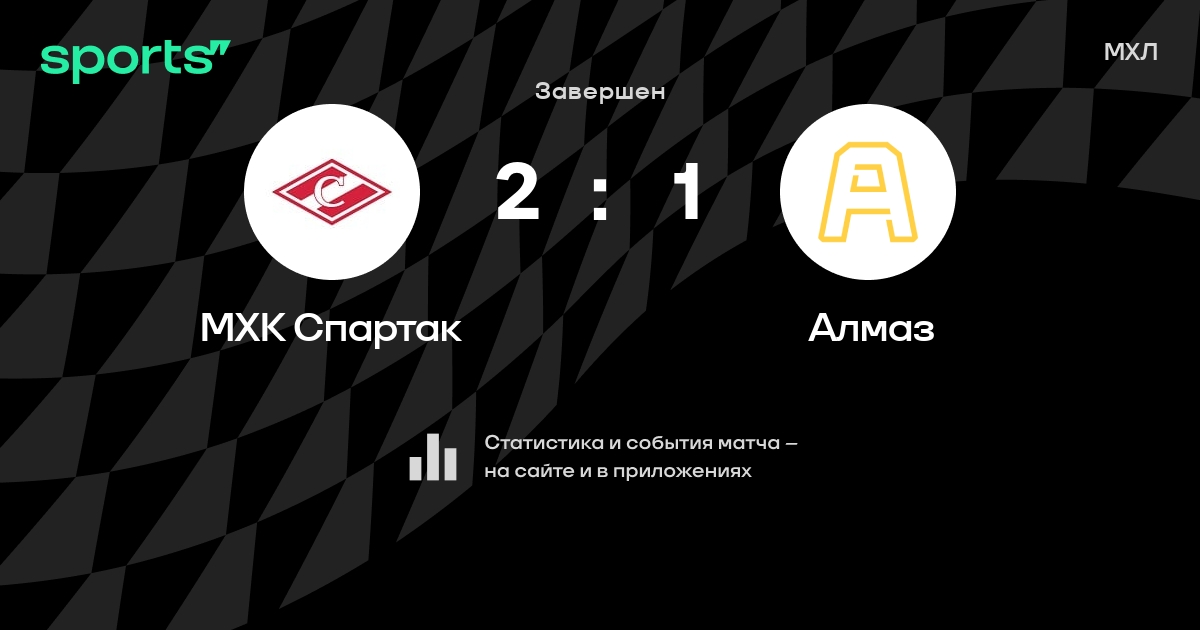 В прошедшем матче в рамках турнира МХЛ состоялась встреча команд МХК Спартак - Алмаз со счетом 2 : 1.