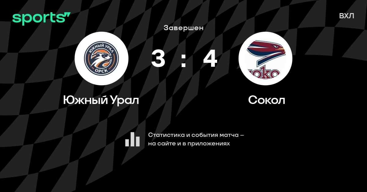 В прошедшем матче в рамках турнира ВХЛ состоялась встреча команд Южный Урал - Сокол со счетом 3 : 4.