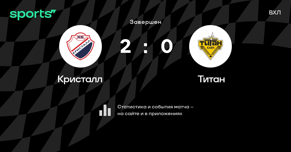 В прошедшем матче в рамках турнира ВХЛ состоялась встреча команд Кристалл - Титан со счетом 2 : 0.