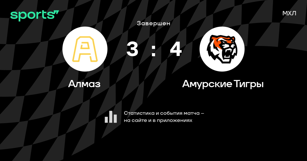 В прошедшем матче в рамках турнира МХЛ состоялась встреча команд Алмаз - Амурские Тигры со счетом 3 : 4.