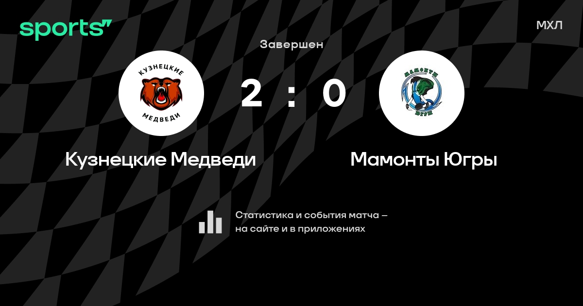 В прошедшем матче в рамках турнира МХЛ состоялась встреча команд Кузнецкие Медведи - Мамонты Югры со счетом 2 : 0.