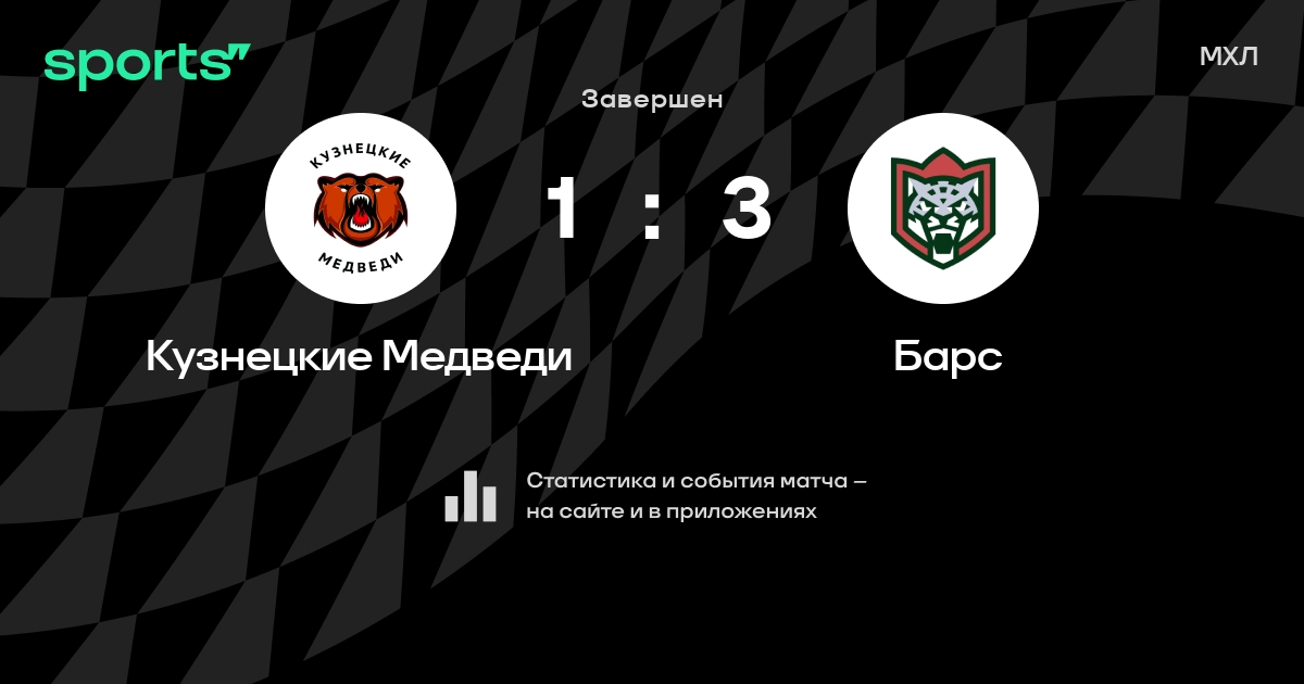 В прошедшем матче в рамках турнира МХЛ состоялась встреча команд Кузнецкие Медведи - Барс со счетом 1 : 3.