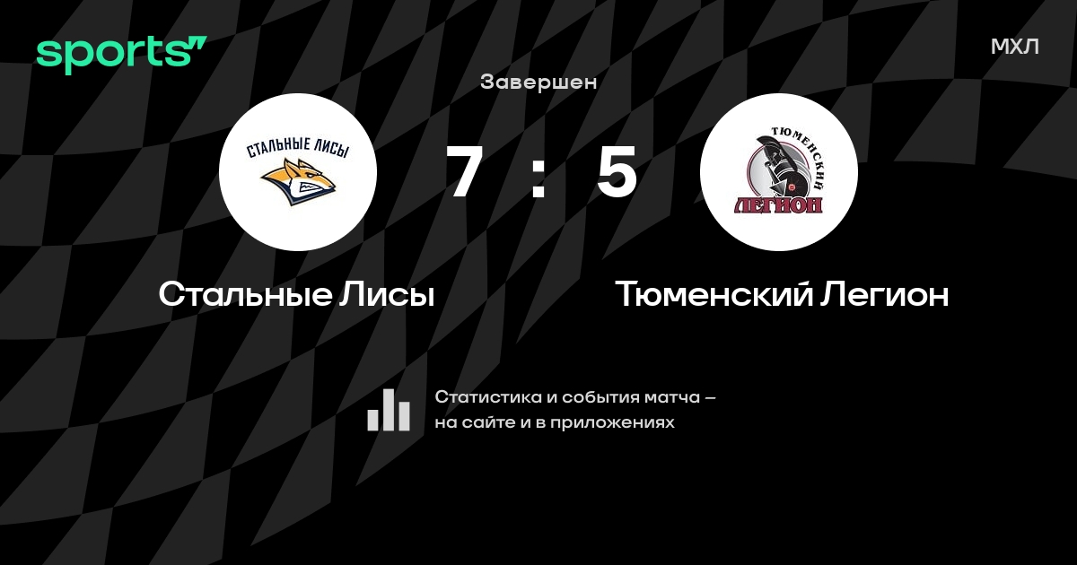В прошедшем матче в рамках турнира МХЛ состоялась встреча команд Стальные Лисы - Тюменский Легион со счетом 7 : 5.