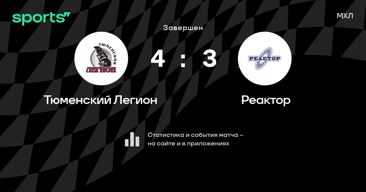 В прошедшем матче в рамках турнира МХЛ состоялась встреча команд Тюменский Легион - Реактор со счетом 4 : 3.