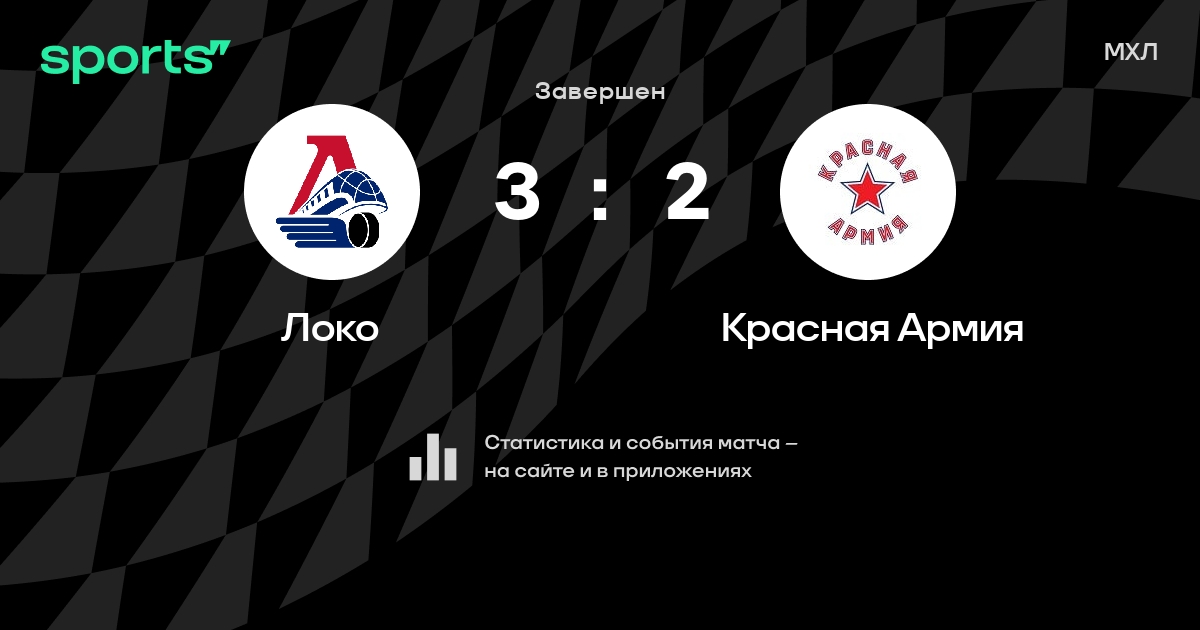 В прошедшем матче в рамках турнира МХЛ состоялась встреча команд Локо - Красная Армия со счетом 3 : 2.