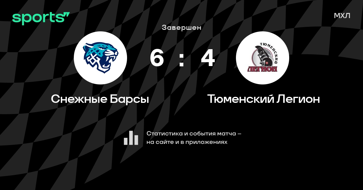 В прошедшем матче в рамках турнира МХЛ состоялась встреча команд Снежные Барсы - Тюменский Легион со счетом 6 : 4.