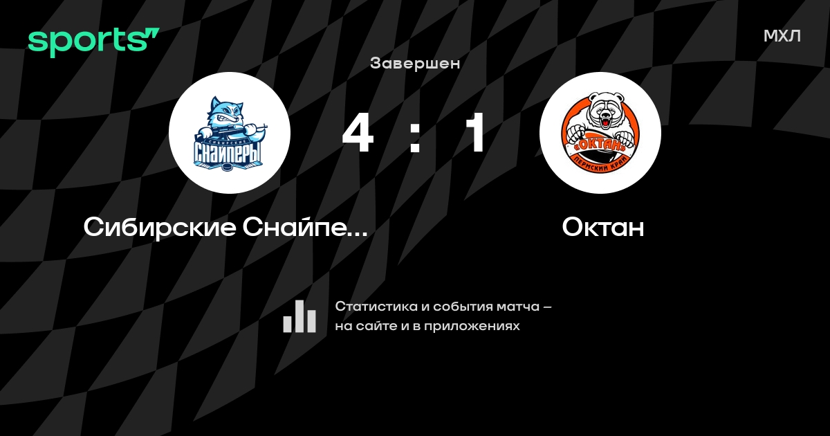 В прошедшем матче в рамках турнира МХЛ состоялась встреча команд Сибирские Снайперы - Октан со счетом 4 : 1.
