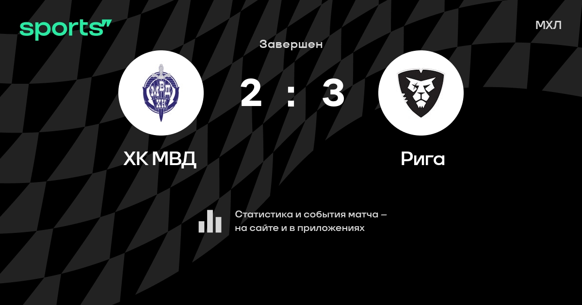 В прошедшем матче в рамках турнира МХЛ состоялась встреча команд ХК МВД - Рига со счетом 2 : 3.