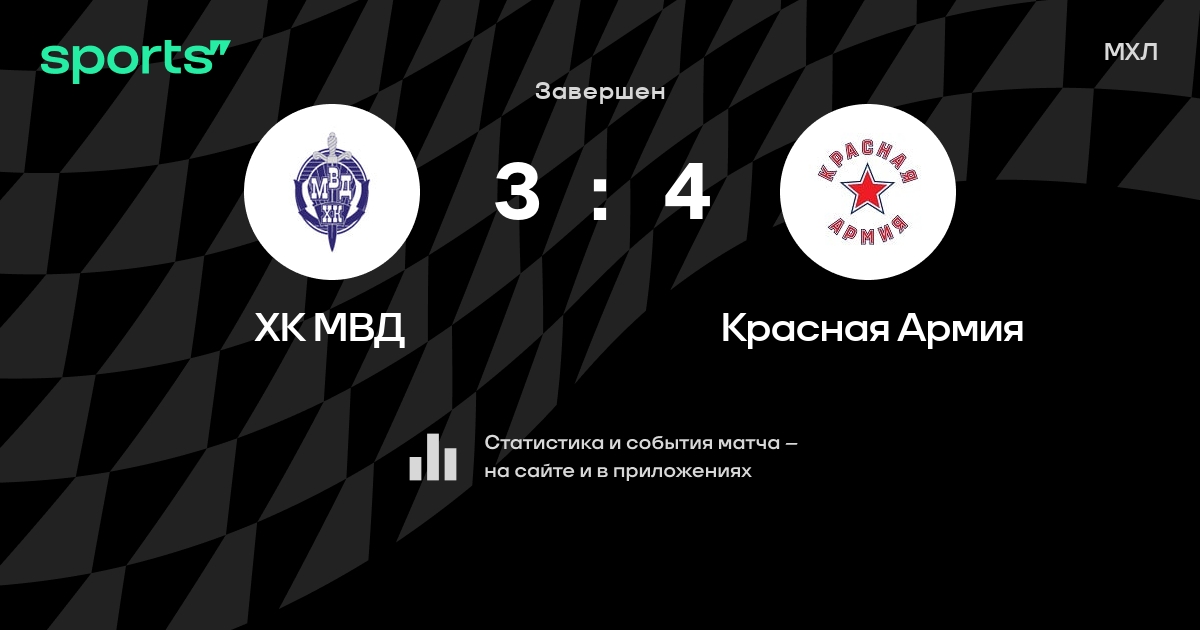 В прошедшем матче в рамках турнира МХЛ состоялась встреча команд ХК МВД - Красная Армия со счетом 3 : 4.