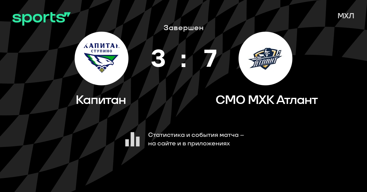 В прошедшем матче в рамках турнира МХЛ состоялась встреча команд Капитан - СМО МХК Атлант со счетом 3 : 7.