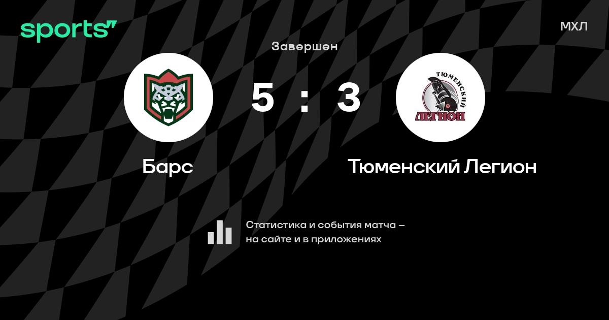 В прошедшем матче в рамках турнира МХЛ состоялась встреча команд Барс - Тюменский Легион со счетом 5 : 3.