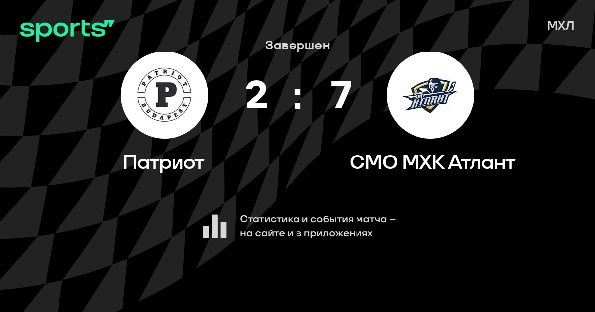 В прошедшем матче в рамках турнира МХЛ состоялась встреча команд Патриот - СМО МХК Атлант со счетом 2 : 7.