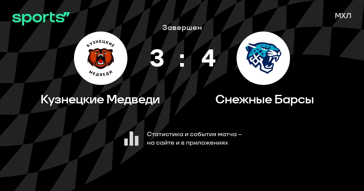 В прошедшем матче в рамках турнира МХЛ состоялась встреча команд Кузнецкие Медведи - Снежные Барсы со счетом 3 : 4.
