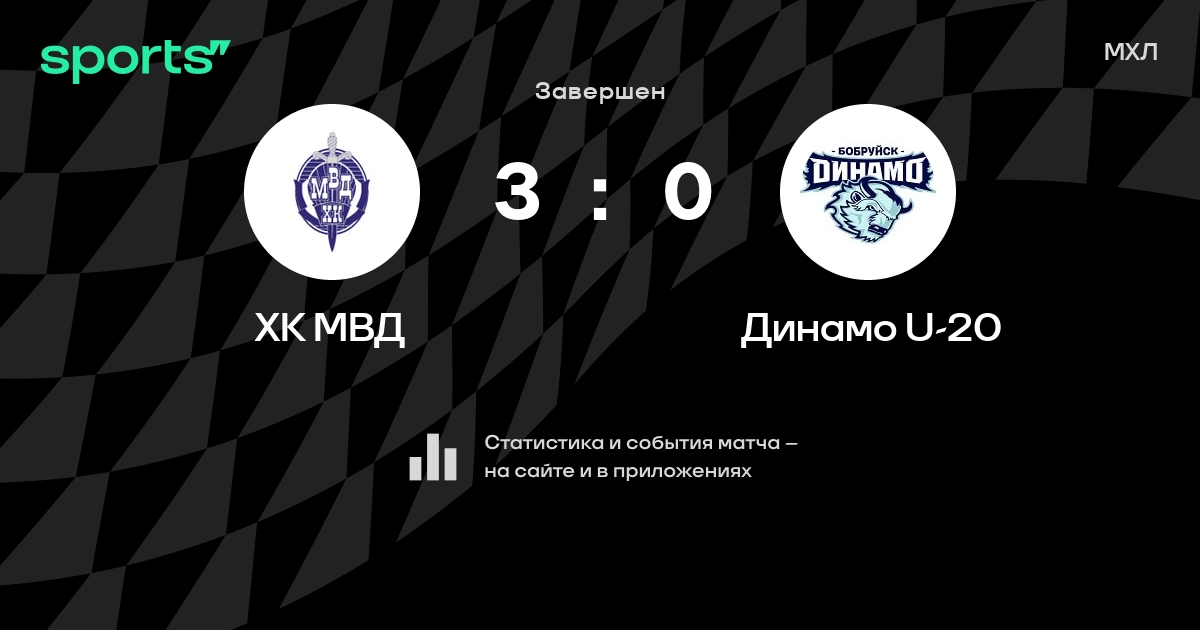 В прошедшем матче в рамках турнира МХЛ состоялась встреча команд ХК МВД - Динамо U-20 со счетом 3 : 0.