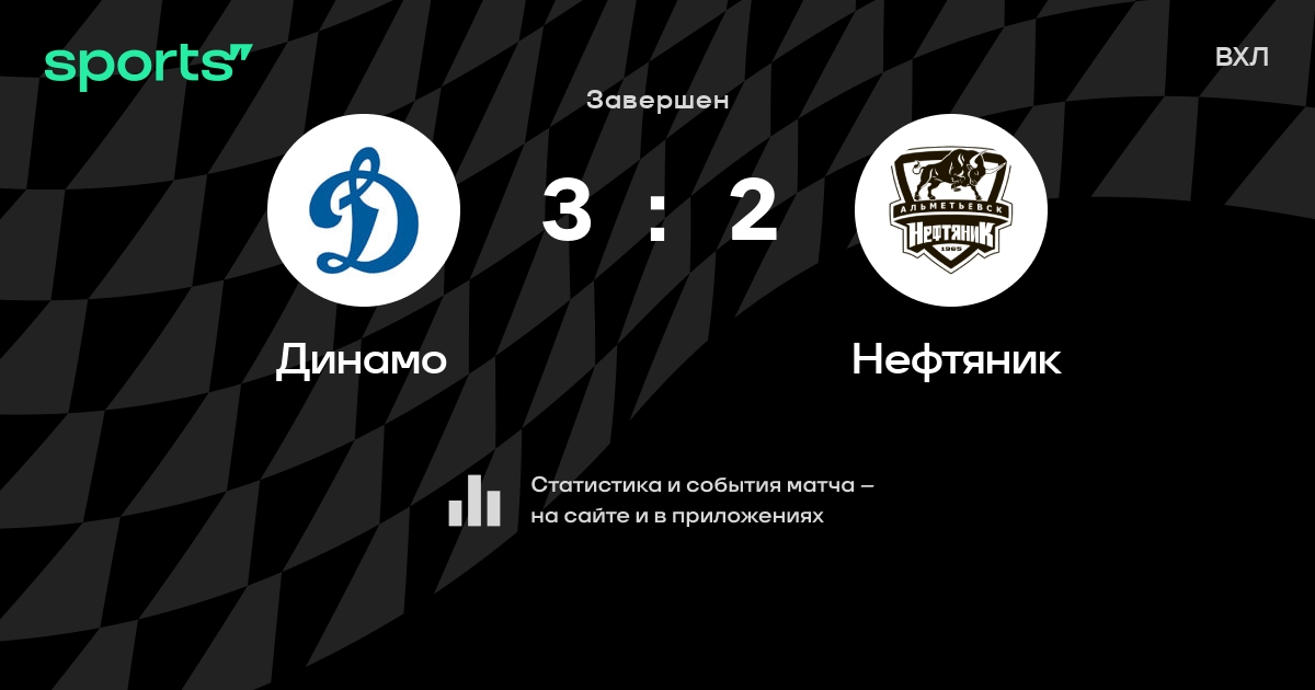 В прошедшем матче в рамках турнира ВХЛ состоялась встреча команд Динамо - Нефтяник со счетом 3 : 2.