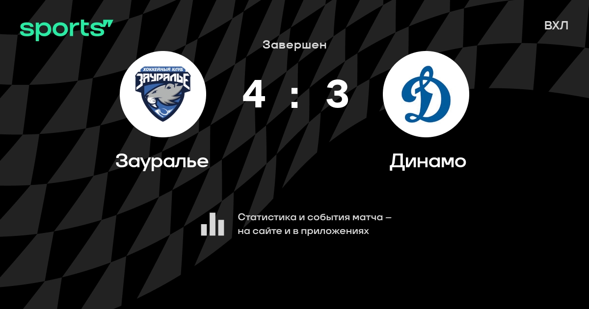 В прошедшем матче в рамках турнира ВХЛ состоялась встреча команд Зауралье - Динамо со счетом 4 : 3.