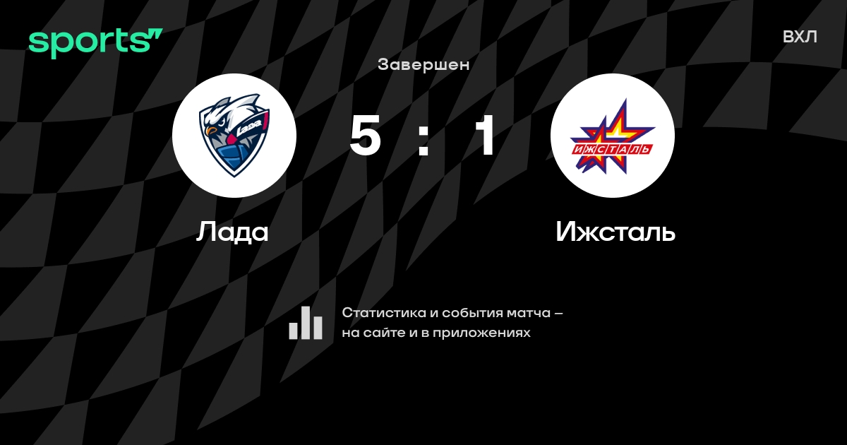 В прошедшем матче в рамках турнира ВХЛ состоялась встреча команд Лада - Ижсталь со счетом 5 : 1.