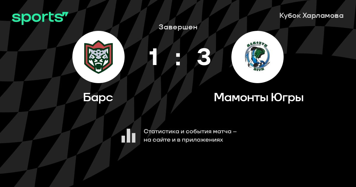 В прошедшем матче в рамках турнира Кубок Харламова 1/8 финала состоялась встреча команд Барс - Мамонты Югры со счетом 1 : 3.